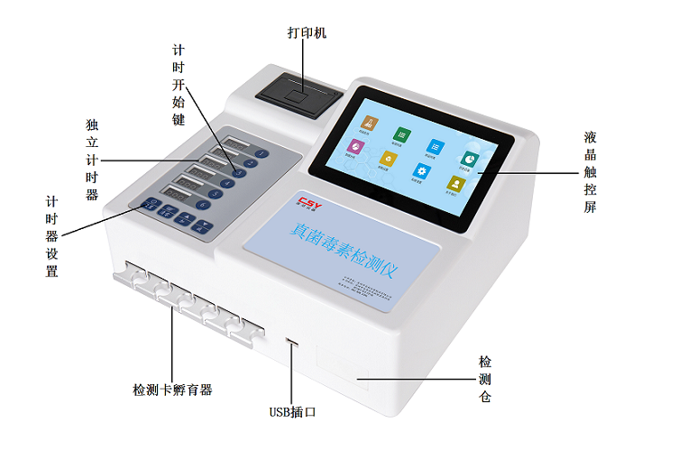 深圳市芬析仪器制造有限公司(深芬仪器)CSY-YG701黄曲霉毒素测定仪通过检测线荧光定量卡中的荧光强弱程度,定量分析待检样品中黄曲霉毒素B1残留含量;能够快速定量检测玉米、小麦、大米、大麦、小米和燕麦等谷物、饲料、面粉、食用油、调味品中黄曲霉毒素B1,黄曲霉毒素测定仪适用于粮库收粮检测、粮油监测中心、粮油饲料生产加工、食品加工贸易、畜禽养殖户自查、质监部门用于市场快速筛查等。
